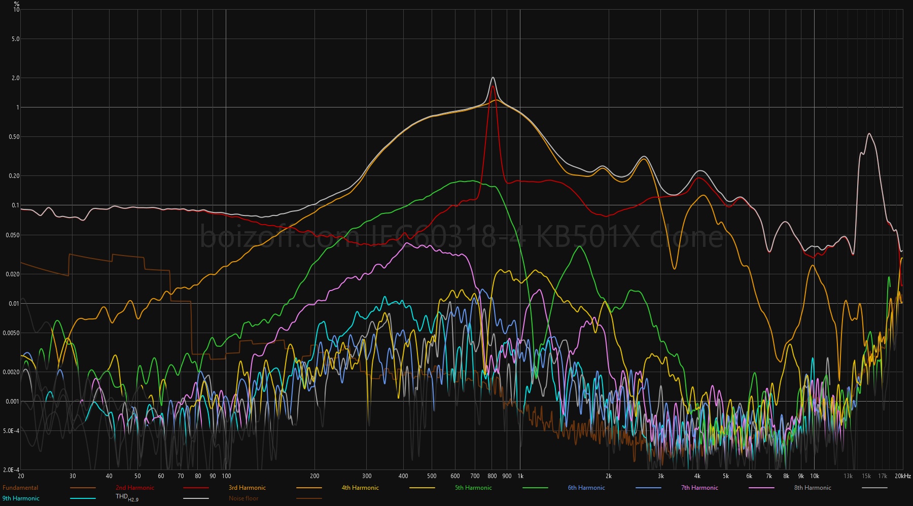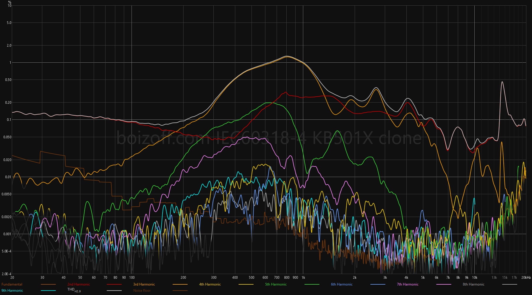 | KBEAR KB02 | Просто плохо настроенные наушники. А еще посмотрите на 200 Гц на графике АЧХ, выставив параметр SMOOTH в 0. На спектрограмме — меч огненный… |