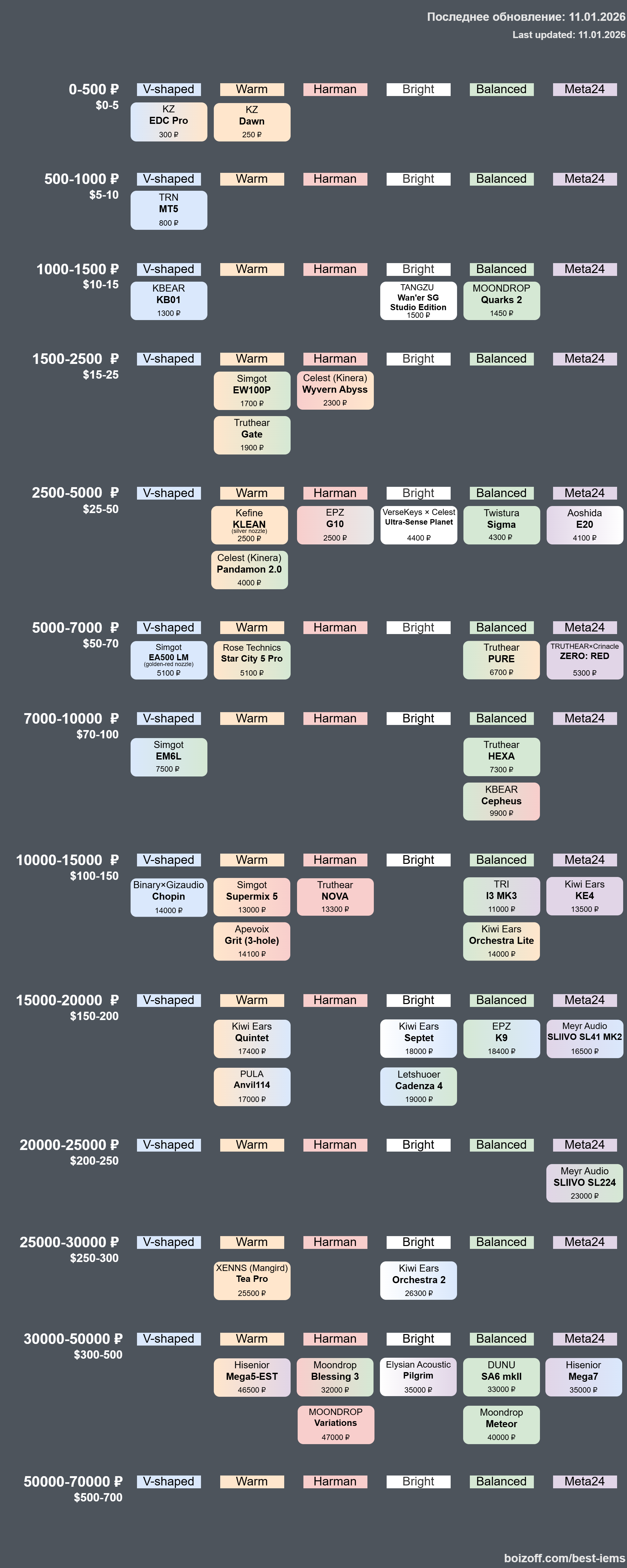 - внутриканальные наушники (включая TWS и вкладыши): https://boizoff.squig.link/;