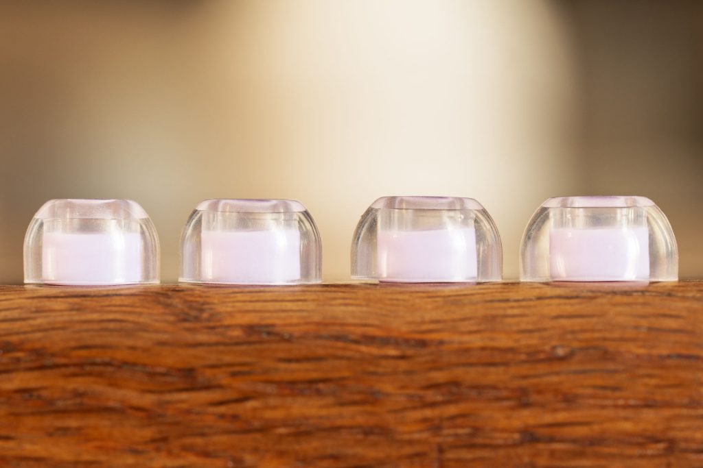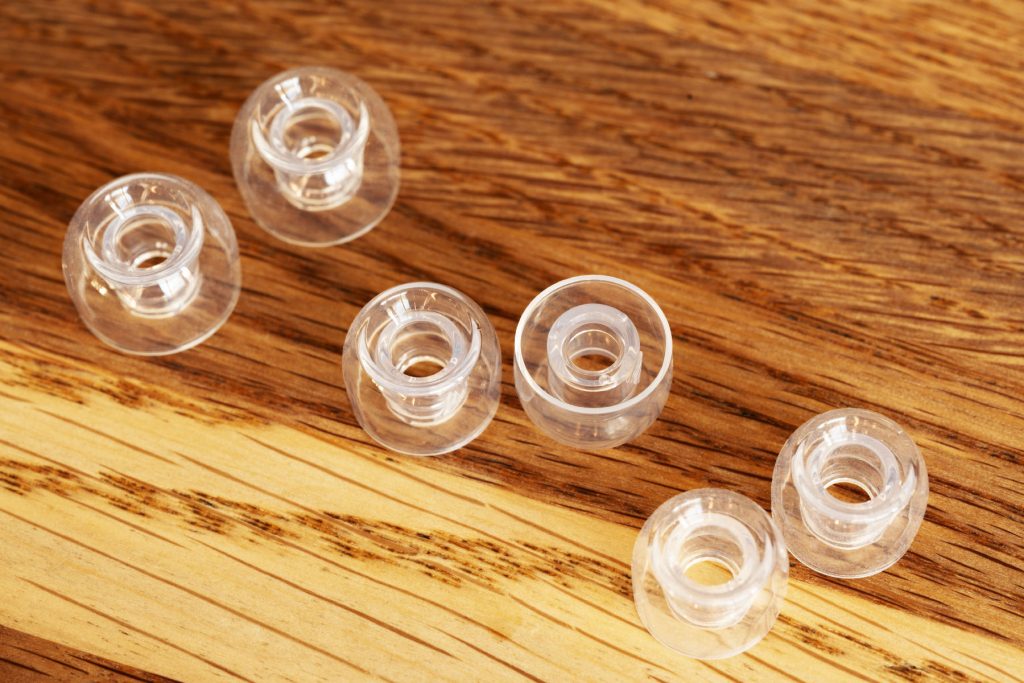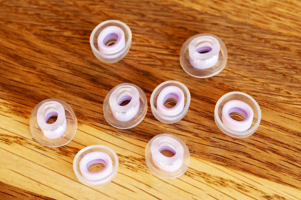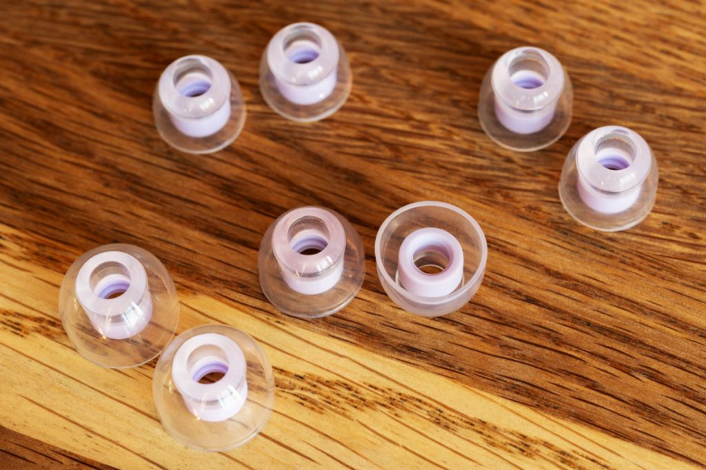 Силикон сам по себе мягкий, даже нежный, «бархатный», но поперечные ребра на фланцах придают его форме неожиданную стабильность. Ощущения при первом помещении в ухо очень… интересные. Отлично «работают» и ребра на конце звуковода; при помещении в слуховой канал звуковод амбушюра совершенно точно не сомкнется. В моем личном случае для одних наушников подходят насадки размера S, для других L, в зависимости от глубины посадки, тогда как обычно подходящим оказывается только один конкретный размер из комплекта. И еще эти амбушюры решили мою проблему с Letshouer Cadenza 4, у них под странным углом загнут звуковод.