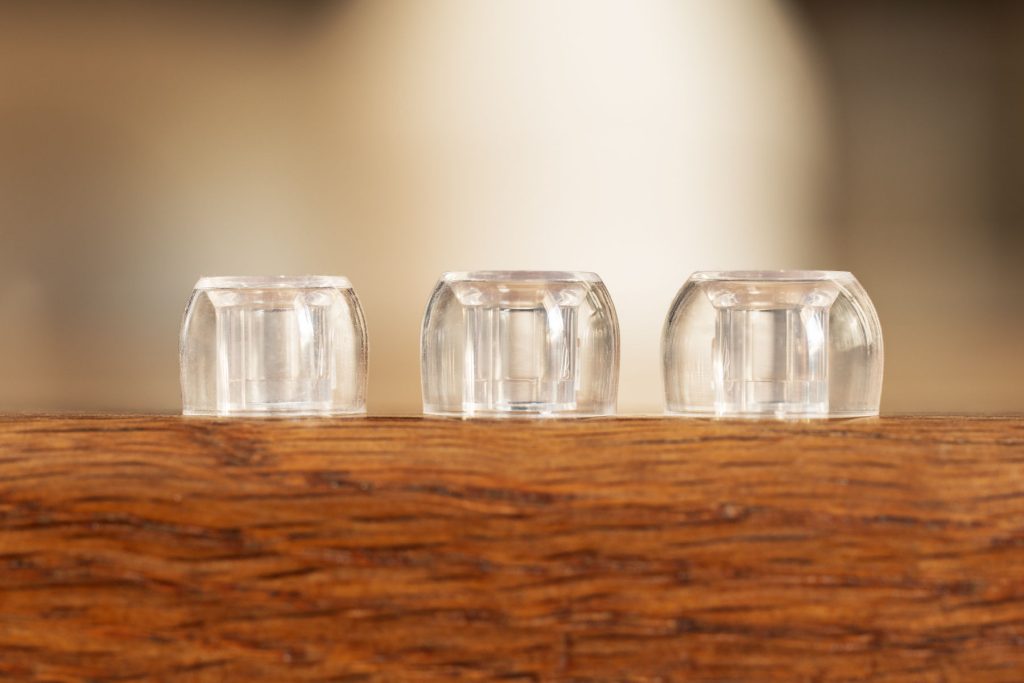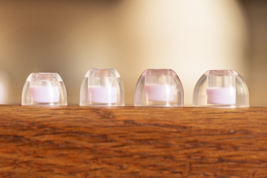 Узкие звуководы, почти прямоугольный профиль у размеров «S» и «M», но обычный силикон в отличие от вышеназванной модели DUNU. EP00 отлично подходят для глубокой посадки и наушников без фаски на звуководе, типа Kiwi Ears Orchestra Lite. Не универсальны, но могут стать «единственными подходящими».