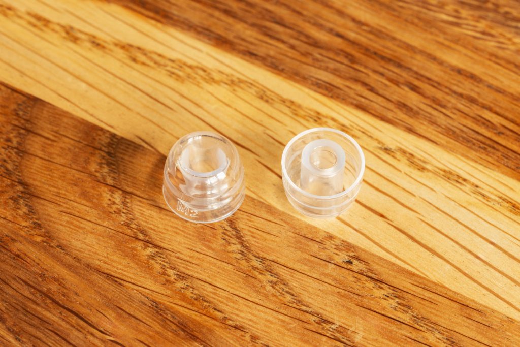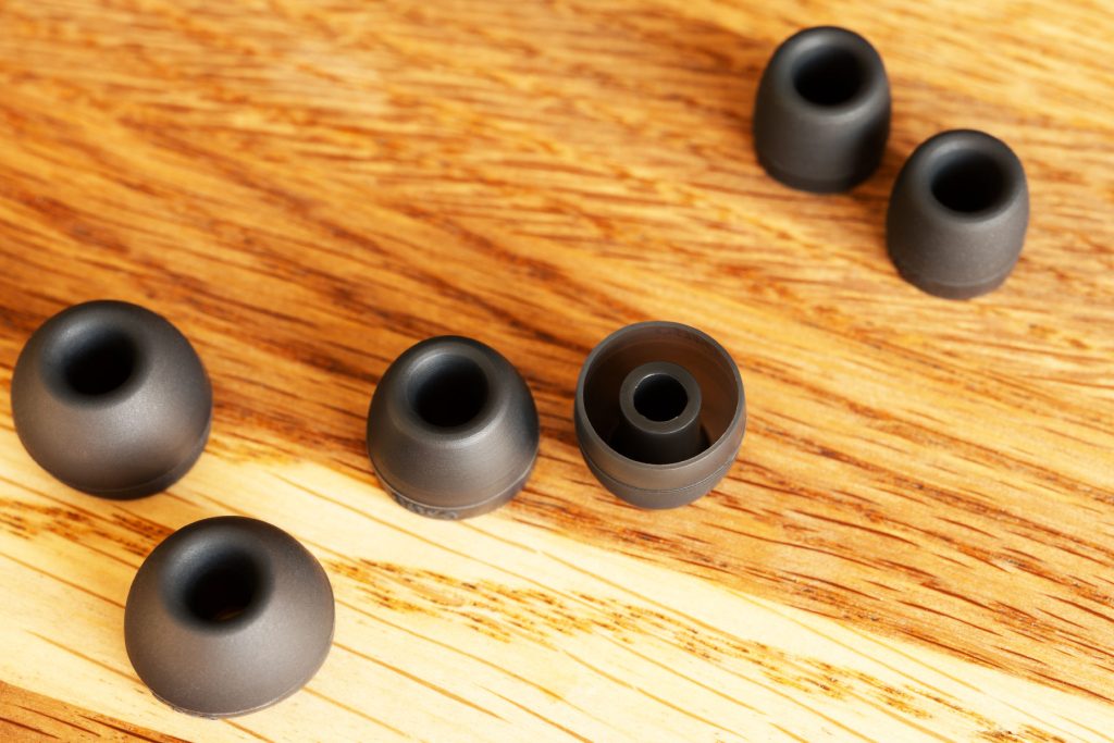 Звуководы сделаны также из ТПЭ, держатся на наушниках только за счет трения, но держатся очень крепко – могу рекомендовать использовать данные амбушюры в паре с наушниками с гладкими звуководами, типа Moondrop Variations или Thutear HEXA.