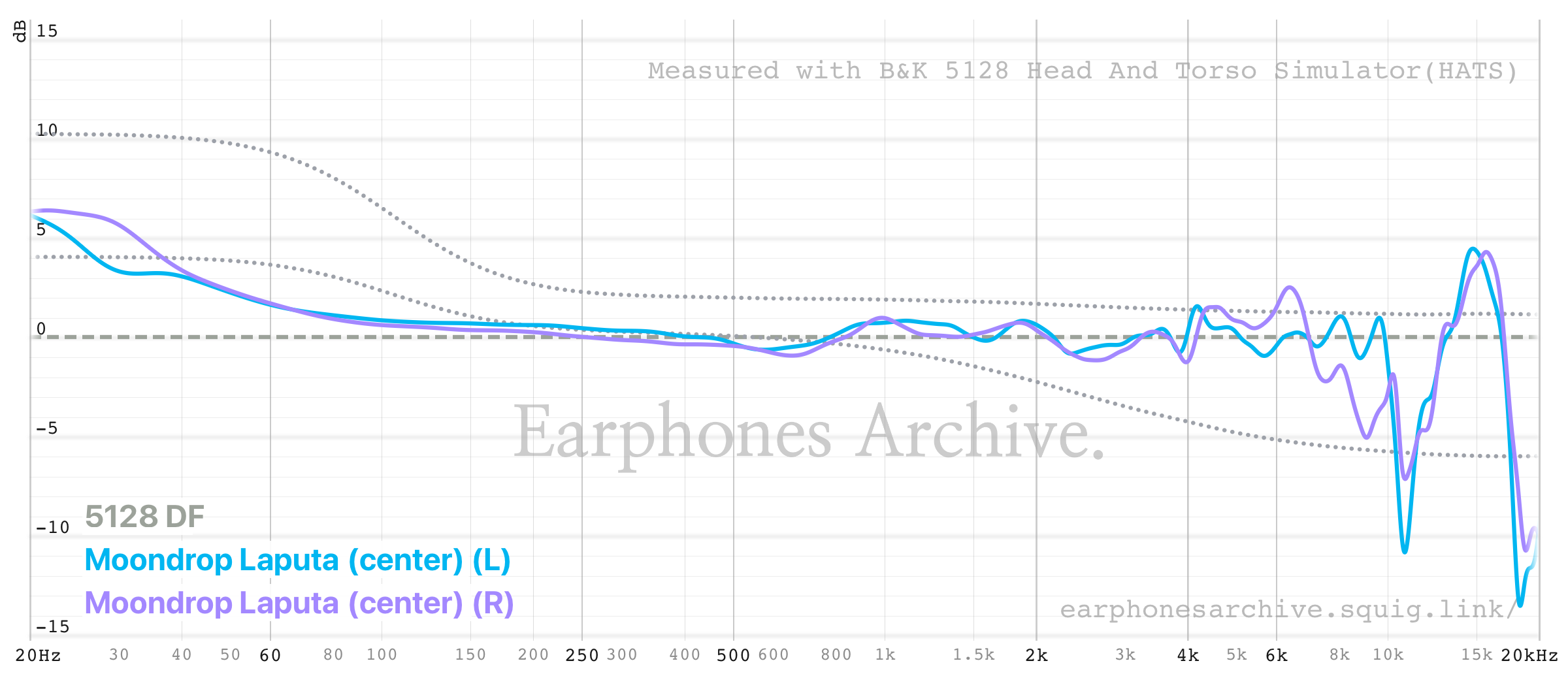 - Целились в кривую VDSF, которая получена через измерение свип-тона в некой «идеальной комнате» через симулятор уха на уровне барабанной перепонки. А свип-тон проигрывался через какие-то мониторы Genelec (источник). То есть целились Moondrop в некий свой нейтральный звук. История мутная, да.