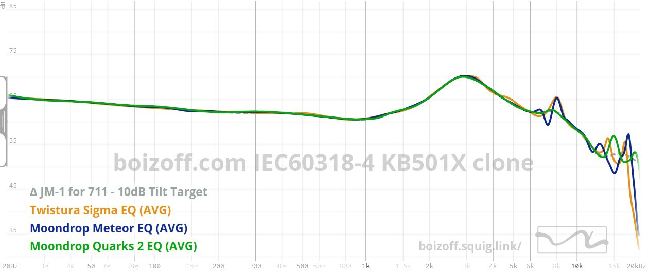 Это очень ровная нейтральная подача с чуть проваленным басом, но настолько же – «чуть» — поднятым саббасом. Плюс небольшой акцент на 1300 Гц, как это сделано у Kiwi Ears Orchestra Lite, TRI I3 MK3 и других околонейтрально настроенных наушниках.