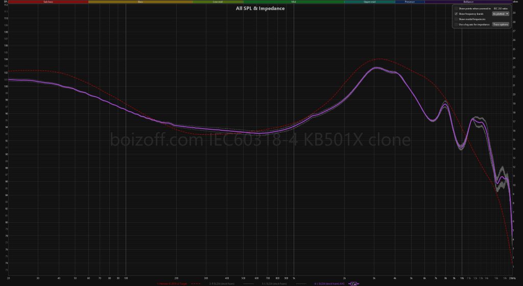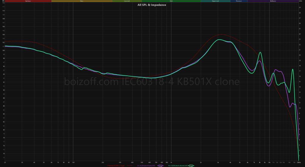 Субъективная оценка такова: я офигел, в хорошем смысле. Офигел прежде всего от того, насколько полноценной получилась подача SL224. И я намеренно не использую слово «сбалансированной», потому что оно отсылает к понятию нейтральности. Буквально все в звуке этих наушников на месте, всех частот ровно в том количестве, в котором лично мое ухо ожидает. Очень, очень весомый, но техничный саббас, «близкая» артикулированная середина со щадящим слух участком около 6-8 кГц, воздушная воздушность после 10 кГц. Очень сложно описывать такой звук, потому что он «правильный» и «вкусный» одновременно. То есть на тональную недостоверность жаловаться точно не получится, она на очень высоком уровне, но также не покидает ощущение вящей «эффектности» звука. Мне сложно как-то ясно связать это с графиками измерений, но предположу, что сказывается как раз линейный участок 600-3000 Гц (и тут можно перейти к бесконечному спору о том, как правильно совмещать графики АЧХ для сравнения), а также некоторое подчеркивание свервысоких частот.