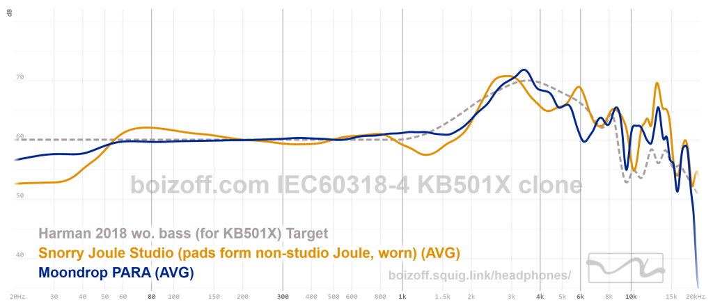 Сравнение АЧХ Snorry Joule Studio (с неперфорированными амбушюрами) и Moondrop Para: