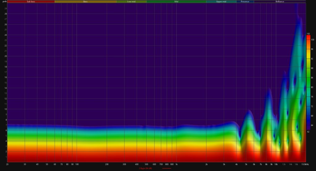 - верхняя середина не сильно ровная, выделена область вокруг 5 кГц;