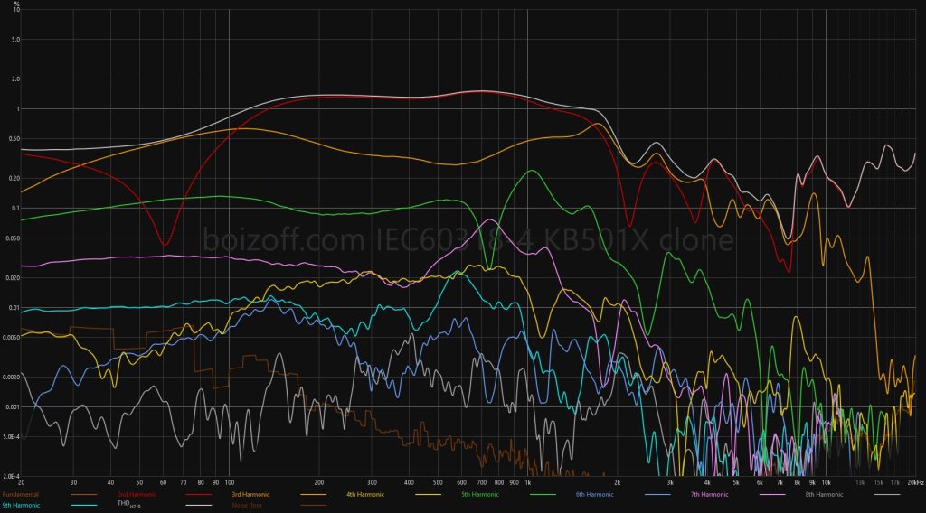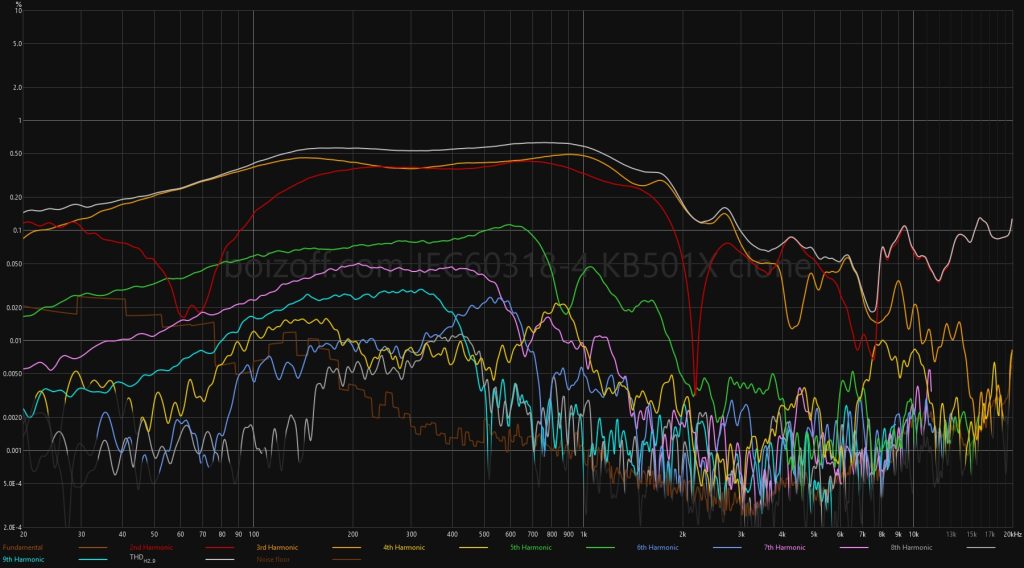 Нелинейные искажения на 104 дБ громкости с выключенной и включенной опцией «Use harmonic frequency as ref»: