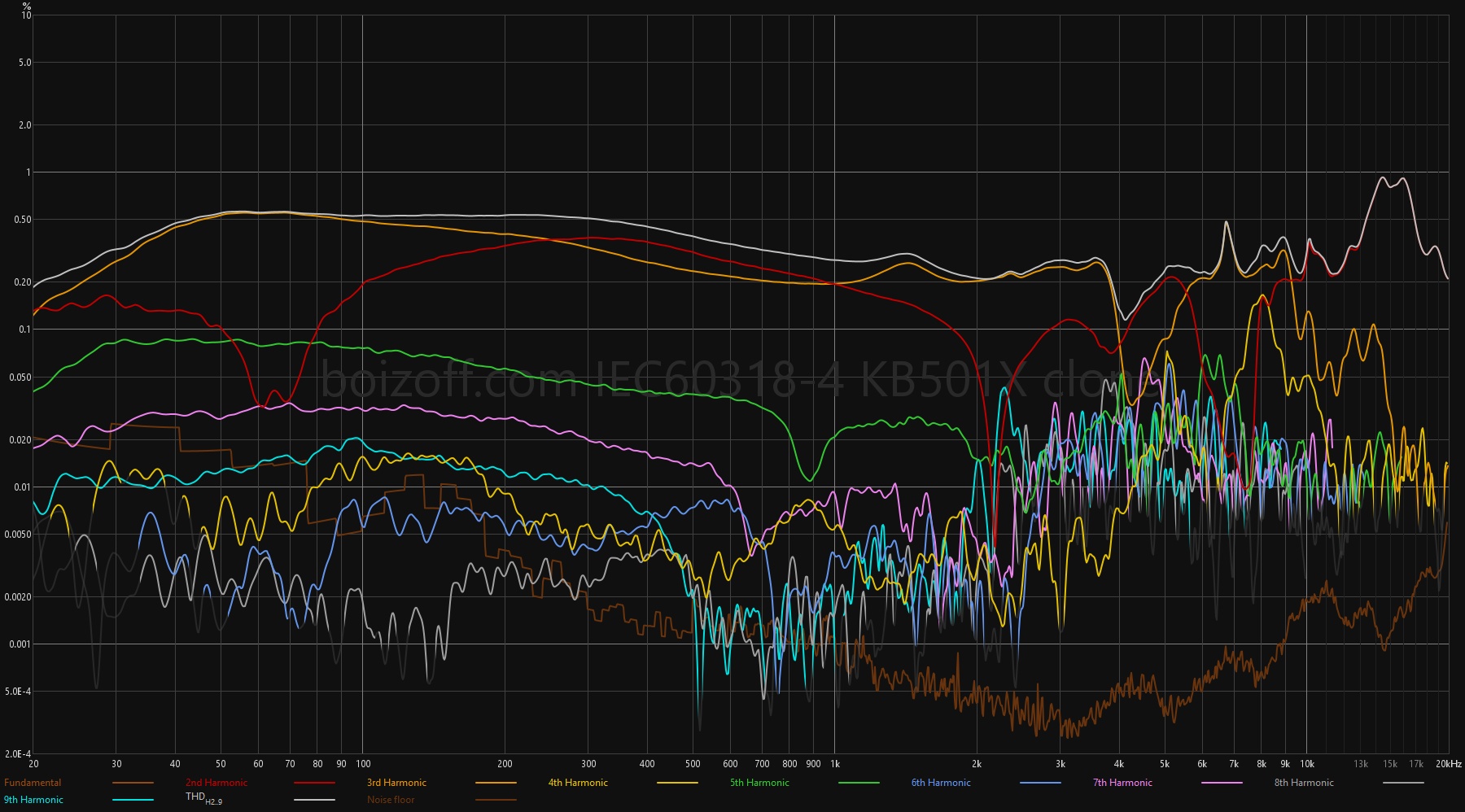 Нелинейные искажения на 104 дБ громкости с выключенной и включенной опцией «Use harmonic frequency as ref»: