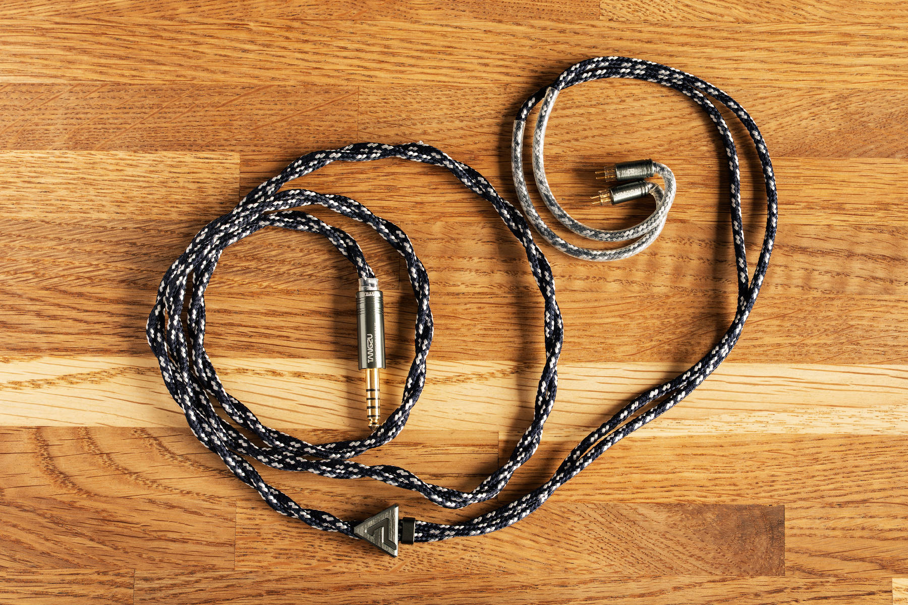 Кабель без сменного коннектора. Произведен компанией Vortex, явно «аудиофильский», в тканевой оплетке и с металлическим сплиттером исключительной брутальности, но, блин, без сменного коннектора. При такой цене наушников это безобразие.