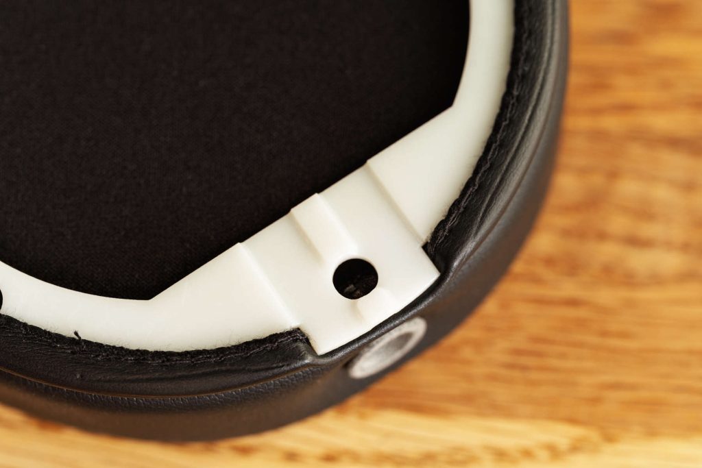 Чашки наушников напечатаны на 3D-принтере, пластик дополнительно обработан. Для 3D-печати поверхность выглядит приятно.