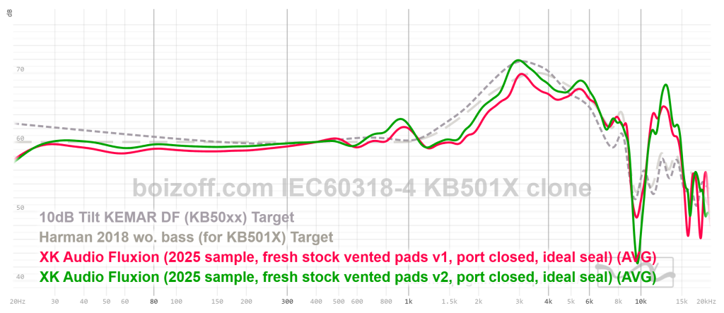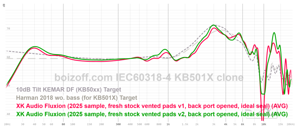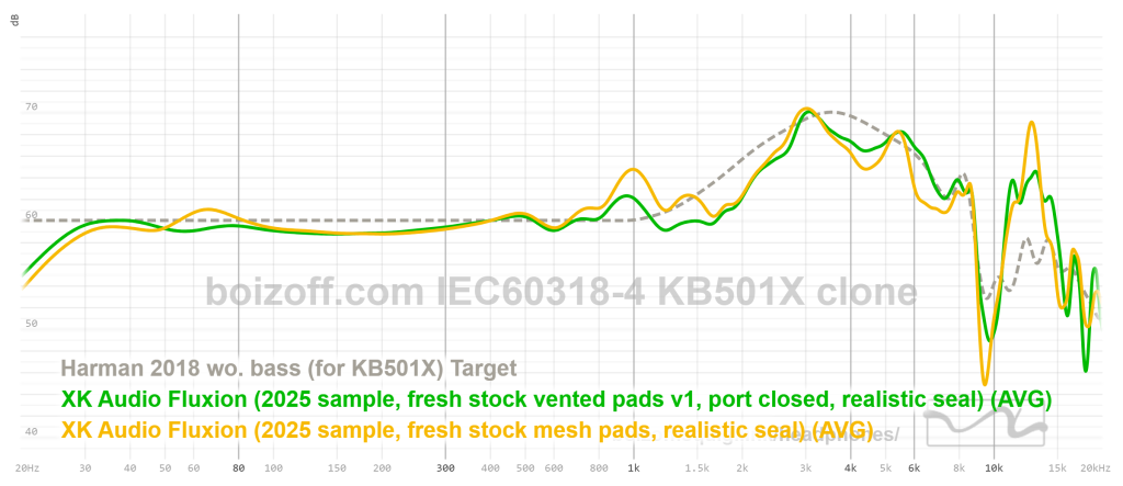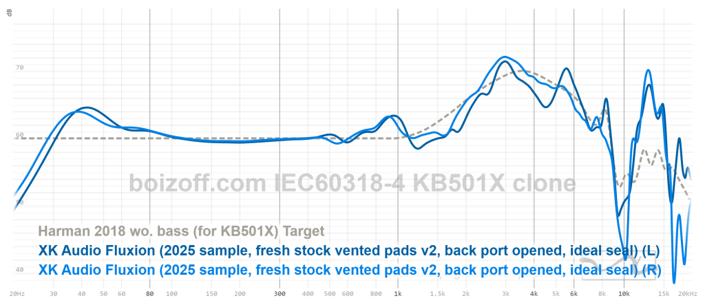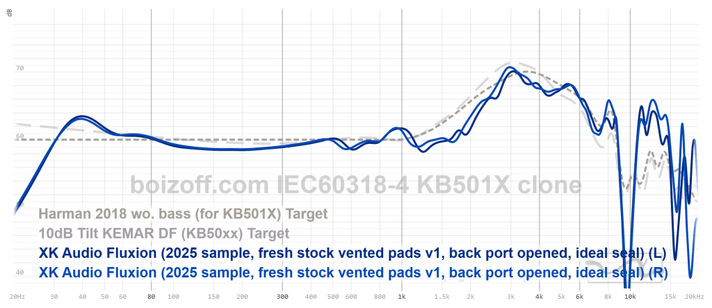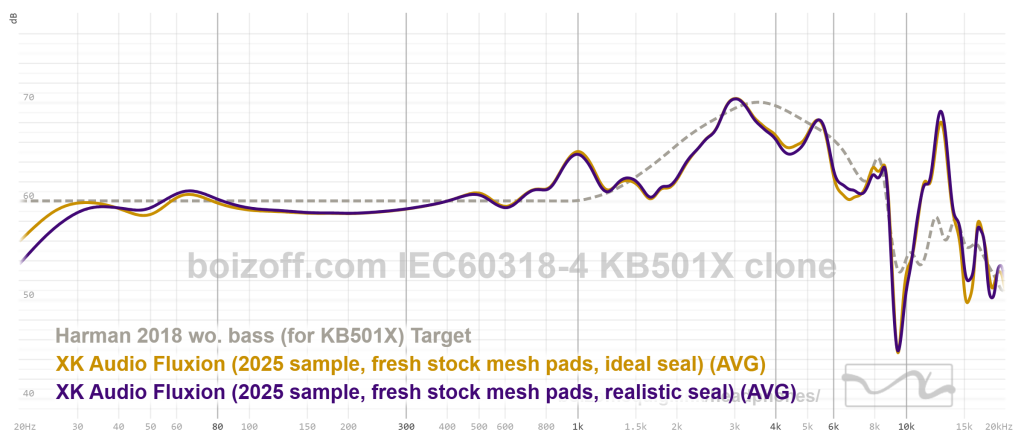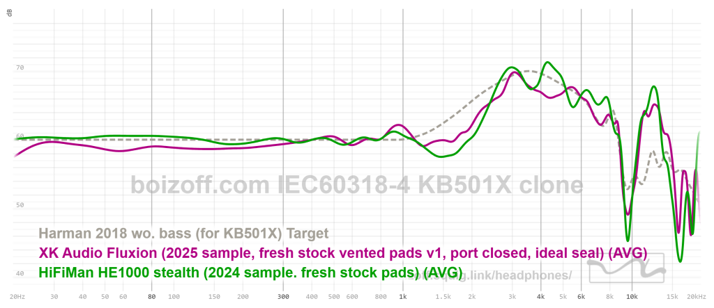 АЧХ XK Audio Fluxion (дырки на амбушюрах закрыты) и HiFiMan HE100 stealth: