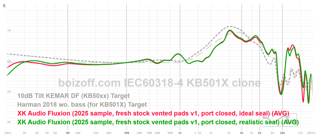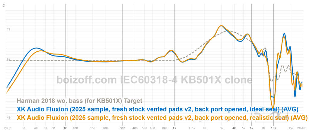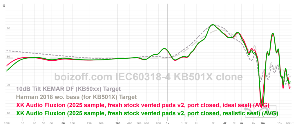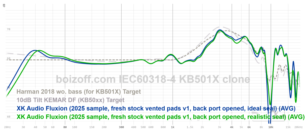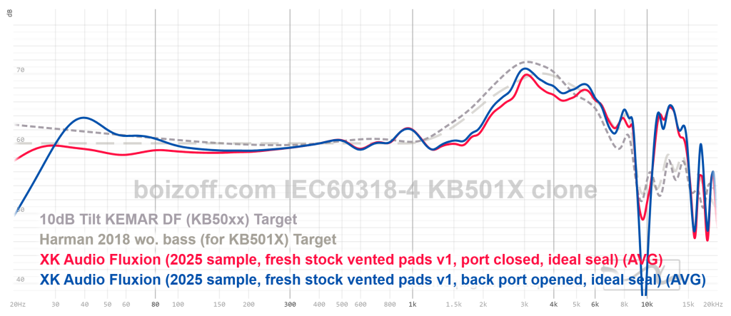 АЧХ Fluxion при использовании кожаных амбушюр с дырками, порт открыт, идеальная посадка на стенд без воздушных зазоров между амбушюром и пластиной стенда: