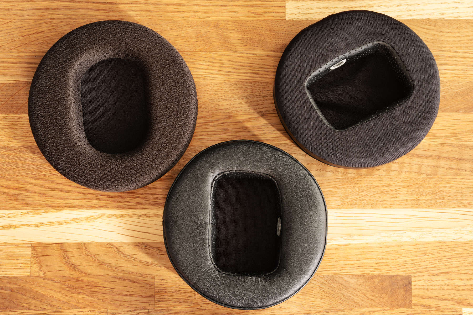 - Кожаные с компенсационными отверстиями (прямо в амбушюр вставлены полые трубки). Толщина: 2,9 см. Внутренняя ширина/высота: 4,3×6,2 см. В моем squig.link значатся как «stock vented pads v1».
