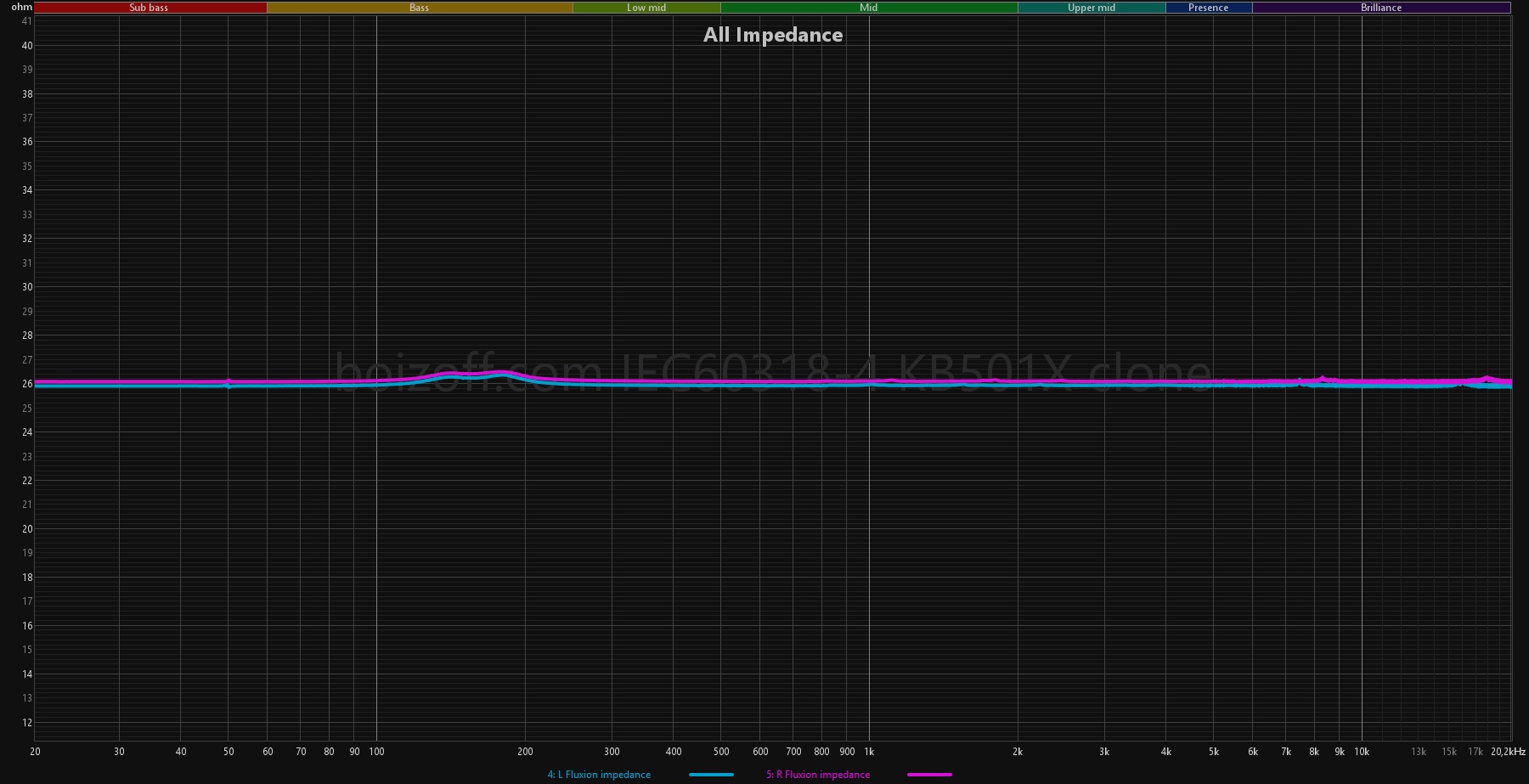 То есть получается практически линейный график на уровне 26 Ом.